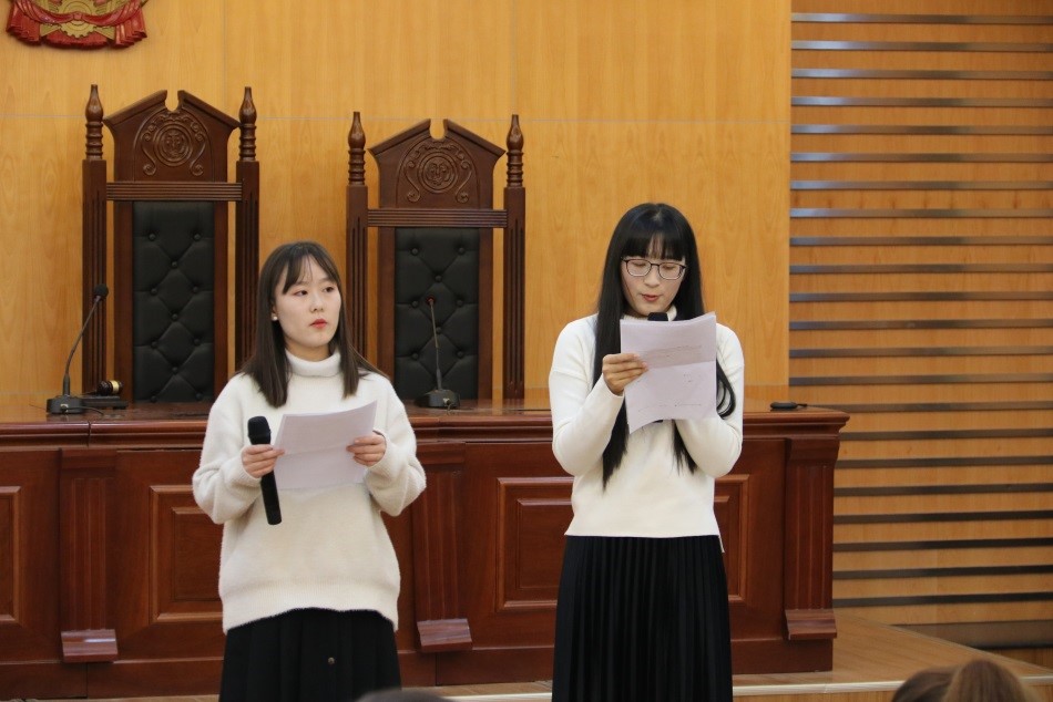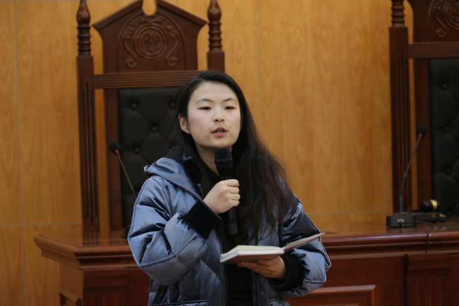 活动伊始,全体与会成员共同奏唱国歌。随后,法律援助中心的赵汝慧、冯雪同学分享宪法相关知识,介绍了宪法司法化的基本知识,并对推动宪法司法化阐述了见解。