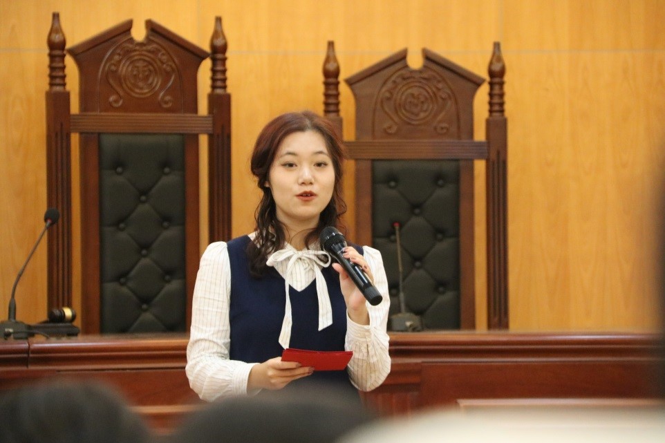 接着,人文青年讲师徐小慧同学分享日常中与宪法的故事,她以在孩童时期接受到了潜移默化的宪法教育为例,说明宪法与我们学习生活息息相关。