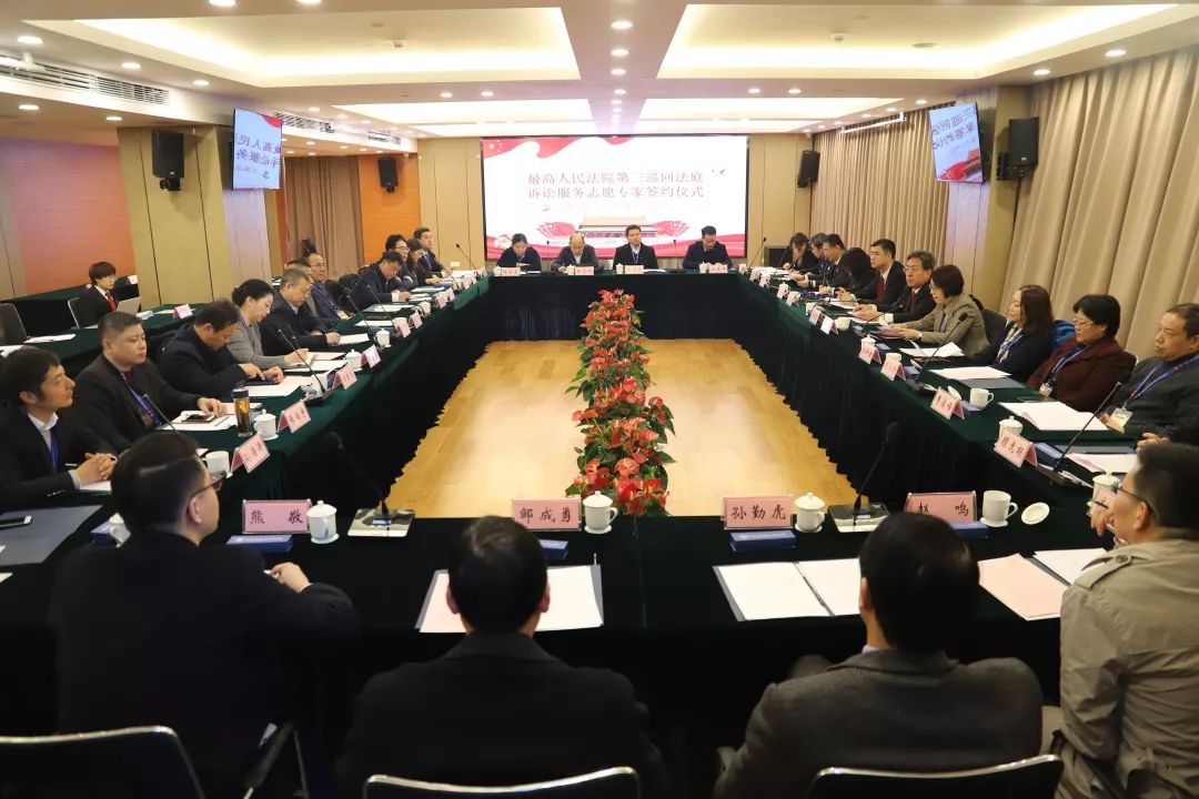 仪式中,最高人民法院第三巡回法庭分党组副书记、副庭长李成玉为南京大学心理健康教育中心主任费俊峰教授、东南大学法学院于立深教授等20名诉讼服务志愿专家颁发了聘任证书。诉讼服务志愿专家围绕矛盾解决纠纷机制中如何发挥中立第三方作用、如何增强社会对法院工作的理解和认同、如何从源头上解决纠纷、诉讼服务志愿者的工作方式和注意事项等问题展开了交流讨论。