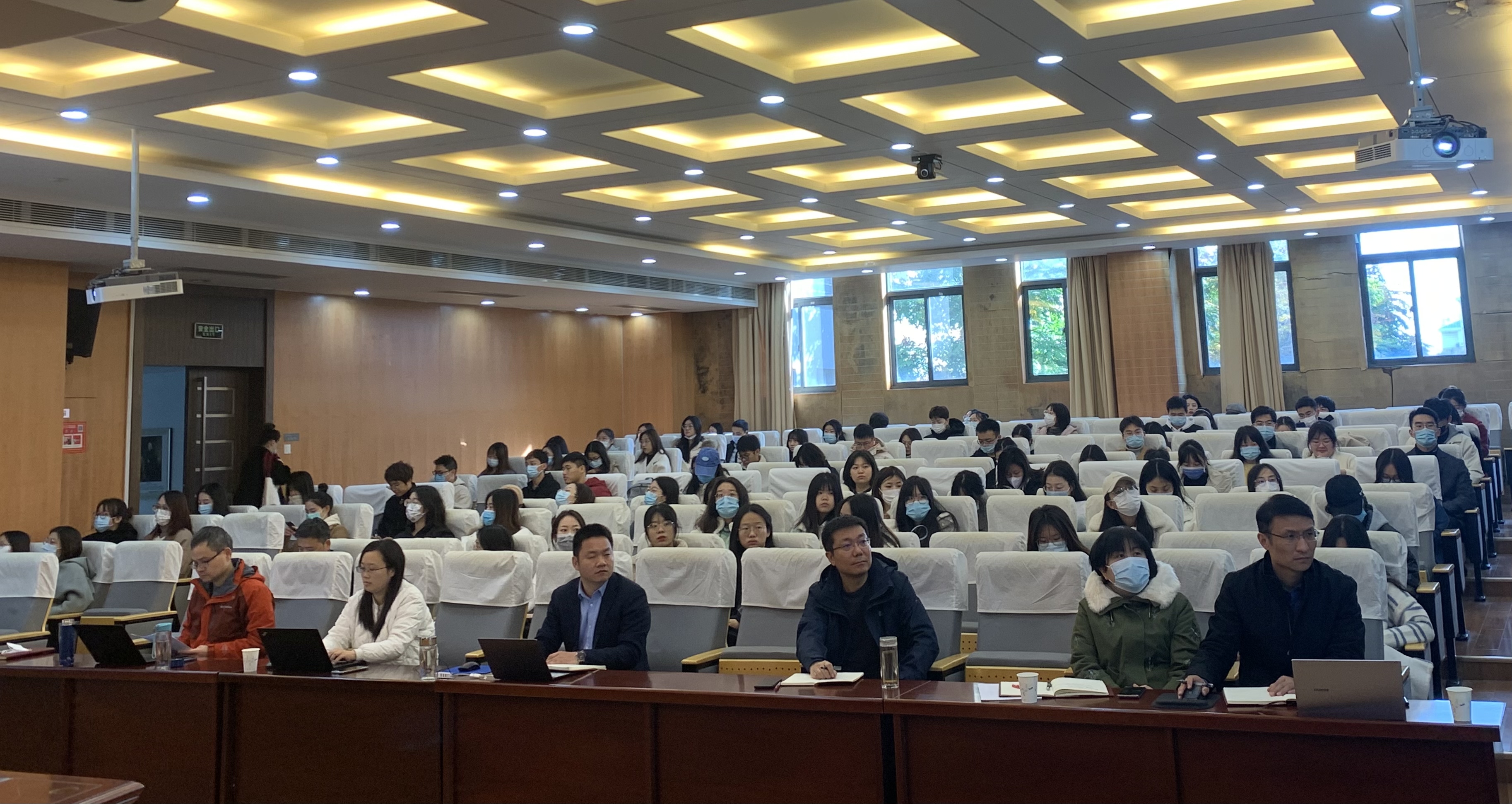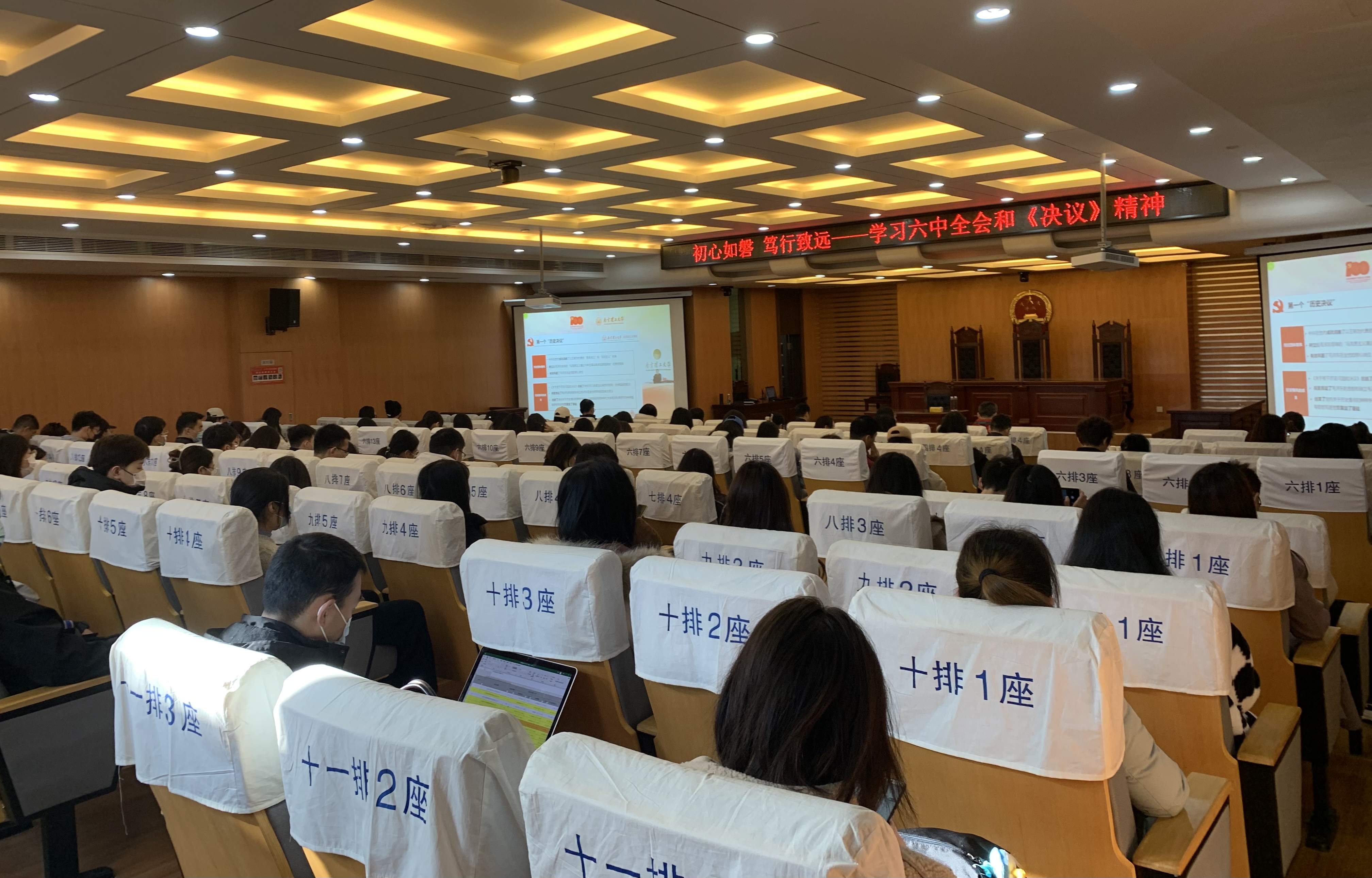 11月24日,反差母狗 组织全体中层党员领导干部及师生党员、发展对象、积极分子,“青马工程”培训班学员在学院模拟法庭参加了工信部党史学习教育第七巡回指导组专题党课。