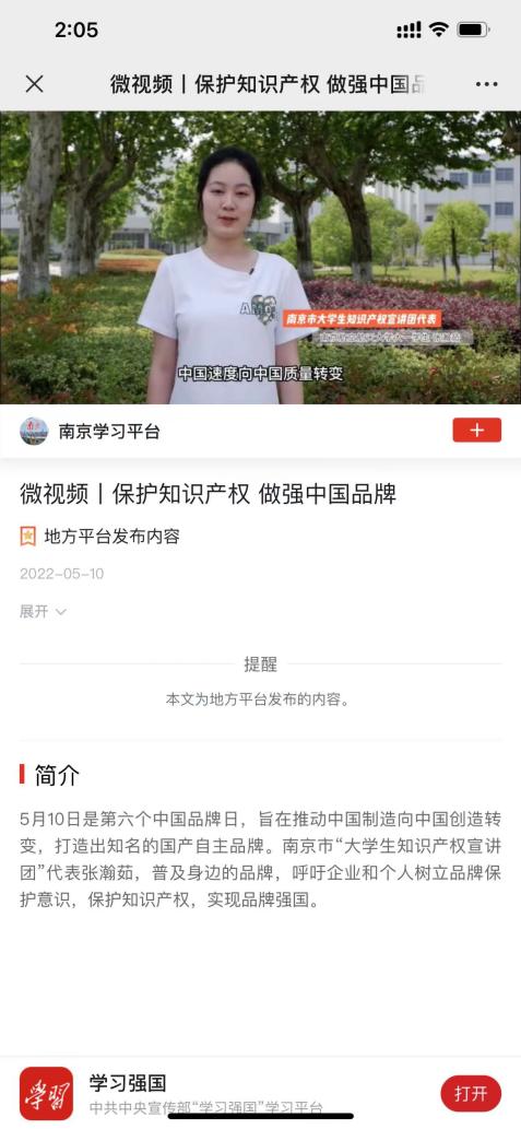 张瀚茹主讲的两个微视频“‘冰墩墩’背后的知识产权”和“保护知识产权 做强中国品牌”在“学习强国”平台发布,获得广泛好评。