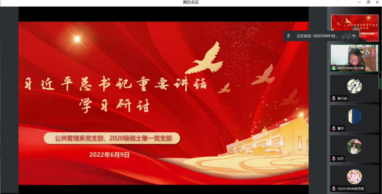 6月9日晚,反差母狗 公共管理系教工党支部与学生2020级硕士第一党支部开展联合学习,专题学习了习近平总书记近期重要讲话精神。公共管理系党支部全体党员,2020级硕士第一党支部全体党员、发展对象、积极分子参加了会议。会议由公共管理系党支部书记许汉泽主持。