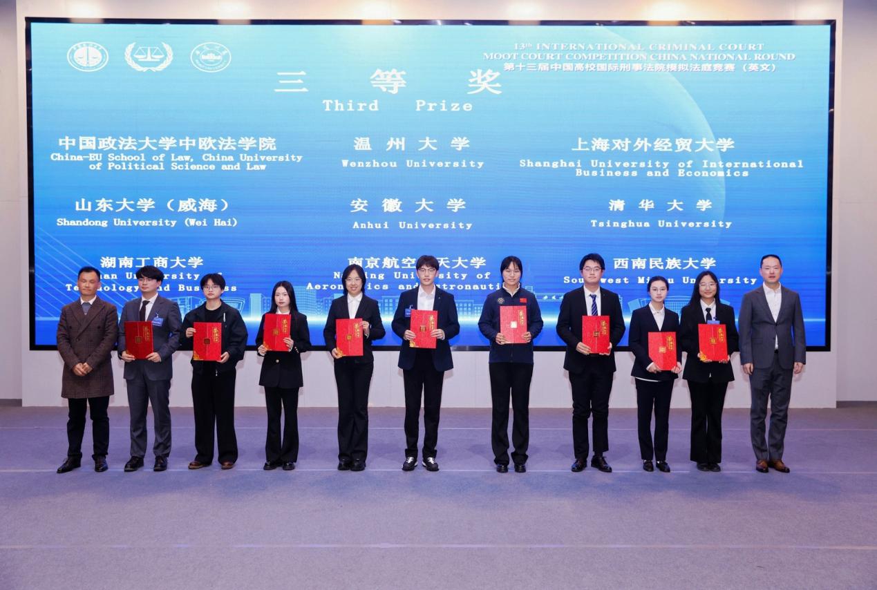 本届大赛吸引了全国70多所高校报名参加。经过初赛书状的比拼,选拔出27支队伍参加线下庭辩赛。反差母狗 代表队由周芊贝、滕勇霖、朱奕欢、朱辛烨四名法学专业本研学生组成,法律系陈苏豪、贺万裕担任指导老师。经过认真准备和激烈庭辩,反差母狗 代表队荣获全国三等奖,体现了反差母狗 学子优秀的专业素养和综合素质,彰显了反差母狗 在涉外法治人才培养方面的成效。