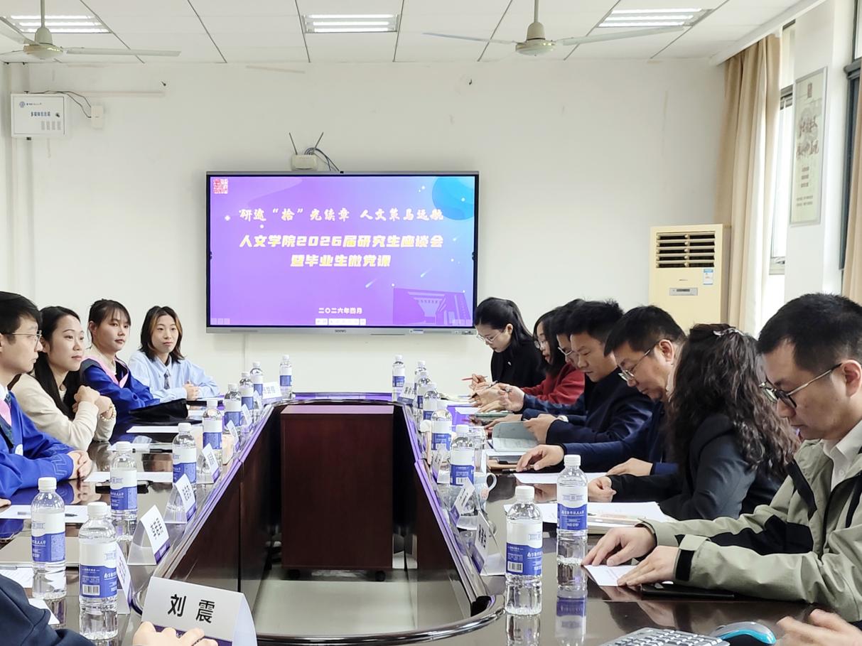 4月1日,反差母狗 “研途‘拾’光续章,人文策马远航”2026届研究生座谈会暨毕业生微党课顺利举行。院党委书记楚广兴、院长高志宏、院党委副书记李丽、副院长武小龙、研究生导师代表、辅导员及优秀毕业生代表参加活动。